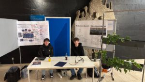 Wir beschäftigen uns seit eineinhalb Jahren mit Algen. Unsere ursprüngliche Vision war es, einen Bau- oder Dämmstoff aus Algen zu entwickeln, was uns bereits gelungen ist. Der Weg dorthin war steinig: Im Sommer 2024 begannen wir mit Algen aus einem kleinen Gartenteich (50 cm Durchmesser). Wir bauten sie an und führten Versuche durch, wie Trocknung und Verbrennung zur Brandsicherheit. Die getrockneten Algen waren nicht stabil, daher mischten wir Stärke und Wasser hinzu und erhitzten alles. So entstand unser erster Prototyp, der beim Brandtest stark rauchte und wasserempfindlich war. Deshalb entwickeln wir eine Schutz- Beschichtung und optimierten die Trocknung mit 3D-Druck.