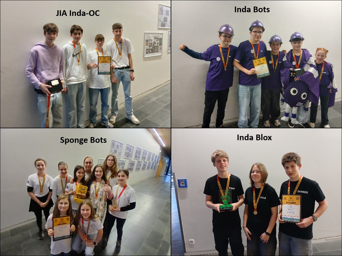 Auch beim Qualifikationswettbewerb am Sonntag konnten die Inda Blox die Jury überzeugen und gewannen im Feld der besten Teams aus Niedersachsen, Hessen, Rheinland-Pfalz und NRW auch hier den Forschungspokal. Außerdem wurde den Coachinnen der Sponge Bots der Coach-Pokal verliehen. Sie führen ihr Team mit sehr viel Empathie und einem hervorragenden Verständnis für Gruppendynamik zu hervorragenden Leistungen und begleiten dabei den Lernprozess, ohne die Arbeit selbst zu übernehmen.