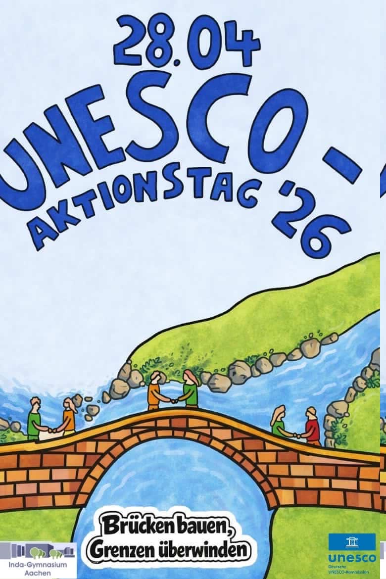 Am Dienstag, 28. April feiern wir am Inda Gymnasium den Unesco-Aktionstag, der dieses Jahr für alle Unesco-Schulen in Deutschland unter dem Motto „Brücken bauen – Grenzen überwinden“ steht. An diesem Tag werden in den Pausen verschiedene Aktivitäten für euch und Sie im PZ angeboten. Zusätzlich wird das Motto im Unterricht der fünften und sechsten Stunde in jeder Klasse und in jedem Kurs aufgegriffen.